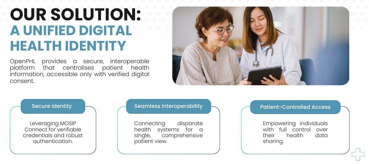 OpenPHL is a groundbreaking digital public good (DPG) built upon MOSIP Connect, designed to revolutionize healthcare through the power of secure, verifiable digital identity. By creating a more integrated and patient-centric system, OpenPHL addresses the critical problem of fragmented patient data, which currently leads to inefficient resource allocation, delays in care, and misdiagnoses. Our solution provides a Unified Digital Health Identity through a secure, interoperable platform that centralizes patient information, accessible only with verified digital consent.